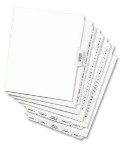Avery 01079 Preprinted Legal Exhibit 11 In. X 8.5 In. Side Tab Index Dividers – White (25/Pack)