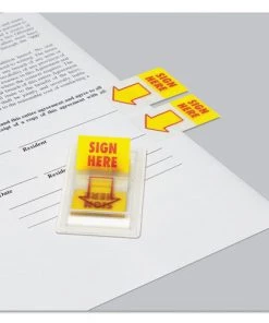 Universal UNV99005 Sign Here Arrow Page Flags – Yellow/Red (2 Dispensers/Pack, 50 Flags/ Dispenser)