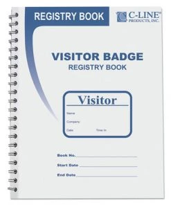 C-Line 97030 3-5/8 In. X 1-7/8 In. Visitor Badges With Registry Log – White (150/Box)