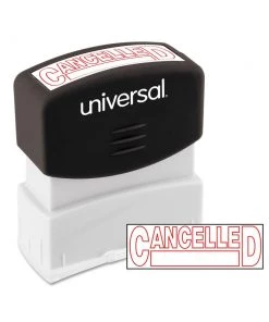 Universal UNV10045 Pre-Inked One-Color CANCELLED Message Stamp – Red