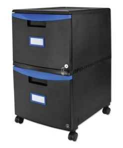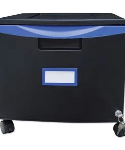 Storex 61314U01C 14.75 In. X 18.25 In. X 26 In. Two Drawer Mobile Filing Cabinet – Black/Blue