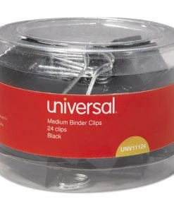 Universal UNV11124 Binder Clips In Dispenser Tub – Medium, Black/Silver (24/Pack)