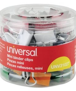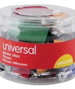 Universal UNV31029 Binder Clips In Dispenser Tub – Medium, Assorted (24-Piece/Pack)