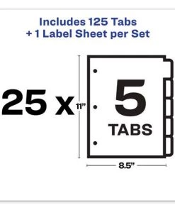Avery 11517 Print-On 5-Tab 3-Hole Punched Dividers – White (5-Piece/Sheet, 25 Sheets/Pack)