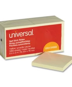 Universal UNV35692 3 In. X 5 In., Self-Stick Note Pads – Yellow (100-Sheet/Pad 18/Pack)