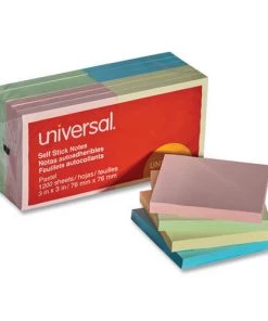 Universal UNV35695 3 In. X 3 In. Self-Stick Notes Pads – Pastel (24 Pads/Pack, 90 Sheets/Pad)