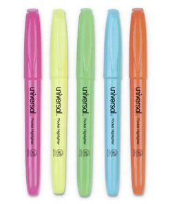 Universal UNV08854 Chisel Tip Fluorescent Blue Ink Blue Barrel Pocket Highlighters (1 Dozen)