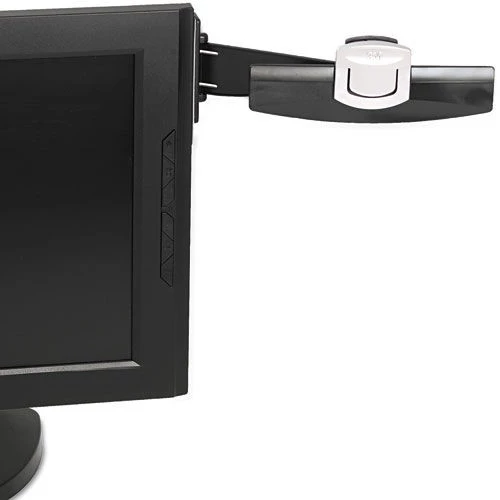- 30 Sheet Capacity Plastic Adhesive Monitor Mount Swing Arm Copyholder – Black/Silver Clip – DH240MB