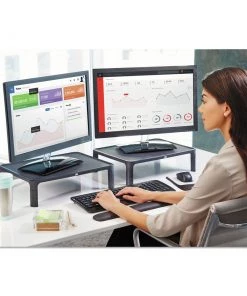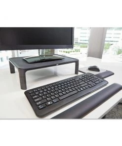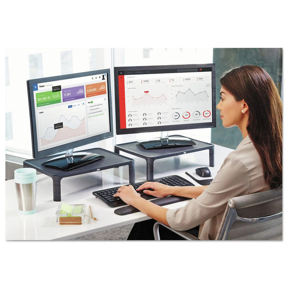 - Maximize your desktop space with the sleek, elevated design of the 3M Adjustable Monitor Stand