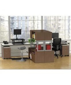 - Two-tiered worksurface and keyboard/mouse platform for better ergonomics