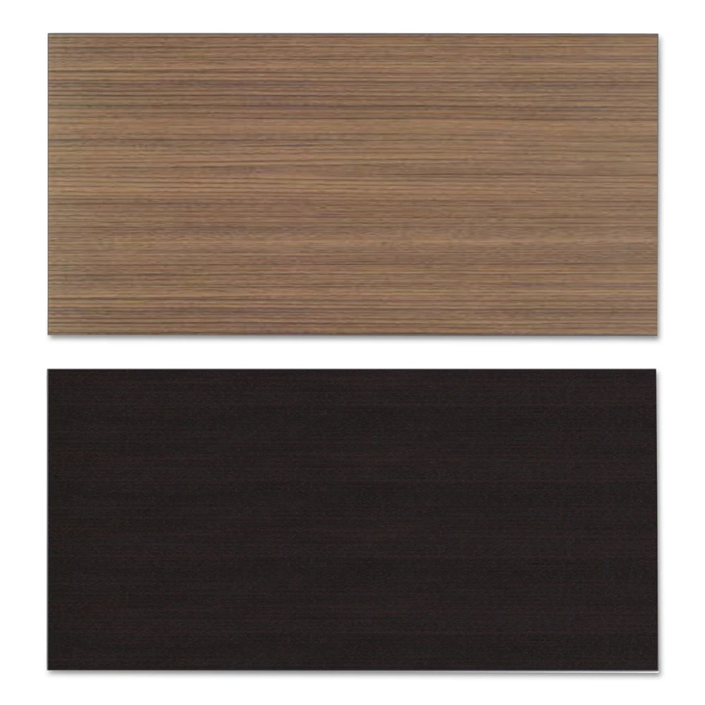 - Reversible table tops have a different color and pattern on each side with coordinating dark gray edge banding