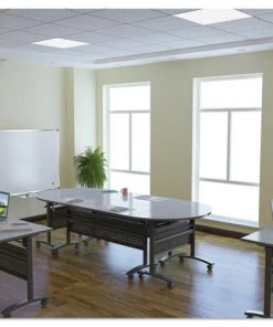 - Reversible table tops have a different color and pattern on each side with coordinating dark gray edge banding