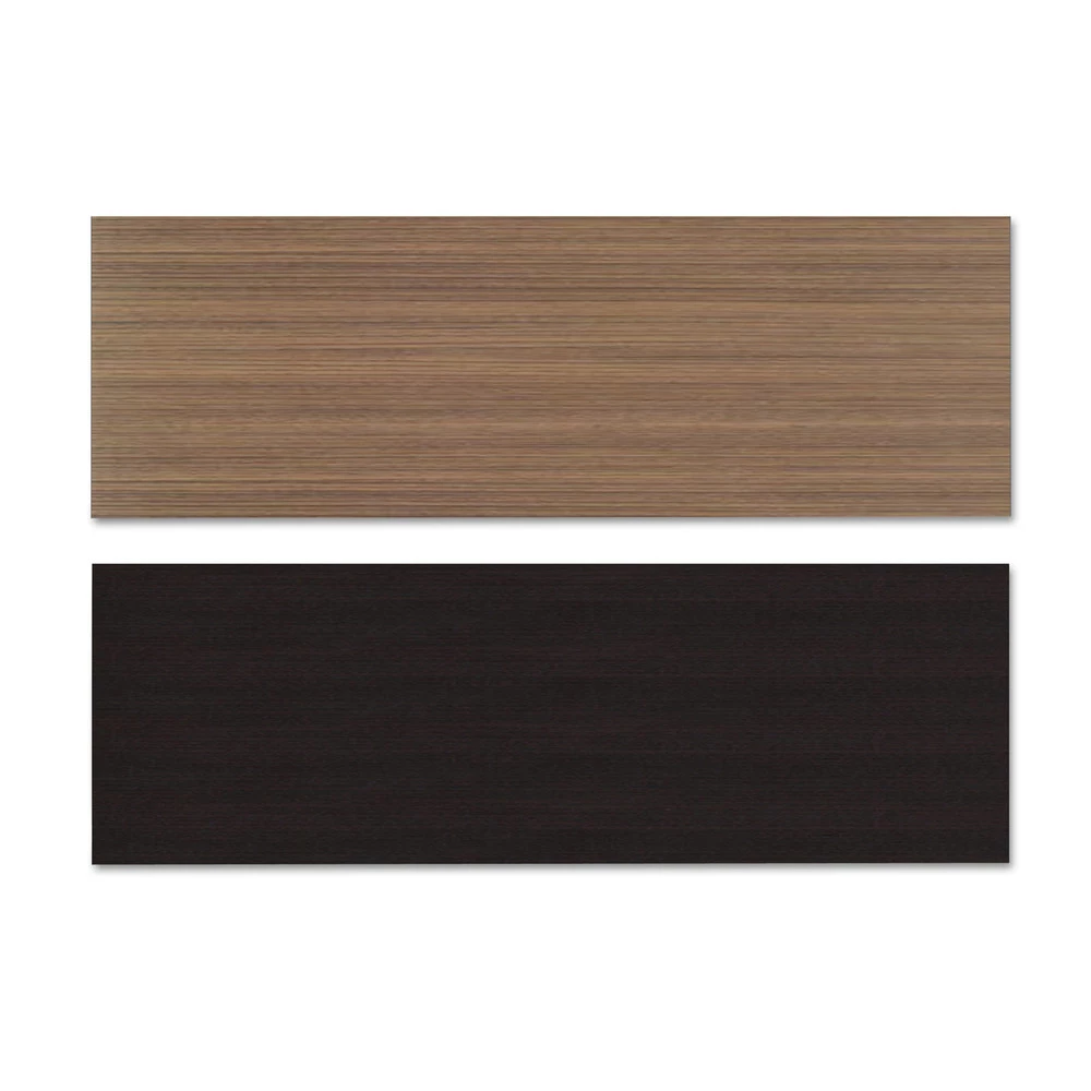 - Reversible table tops have a different color and pattern on each side with coordinating dark gray edge banding