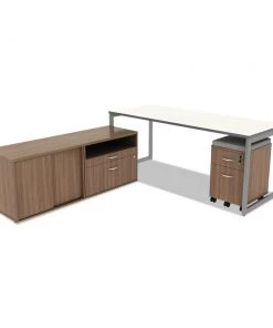 - Reversible table tops have a different color and pattern on each side with coordinating dark gray edge banding