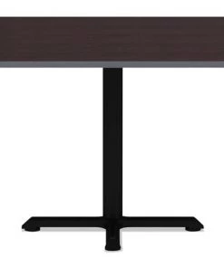 - Reversible table tops have a different color and pattern on each side with coordinating dark gray edge banding