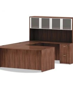 - Valencia Series Bow Front Desk Shell – Modern Walnut – ALEVA227236WA