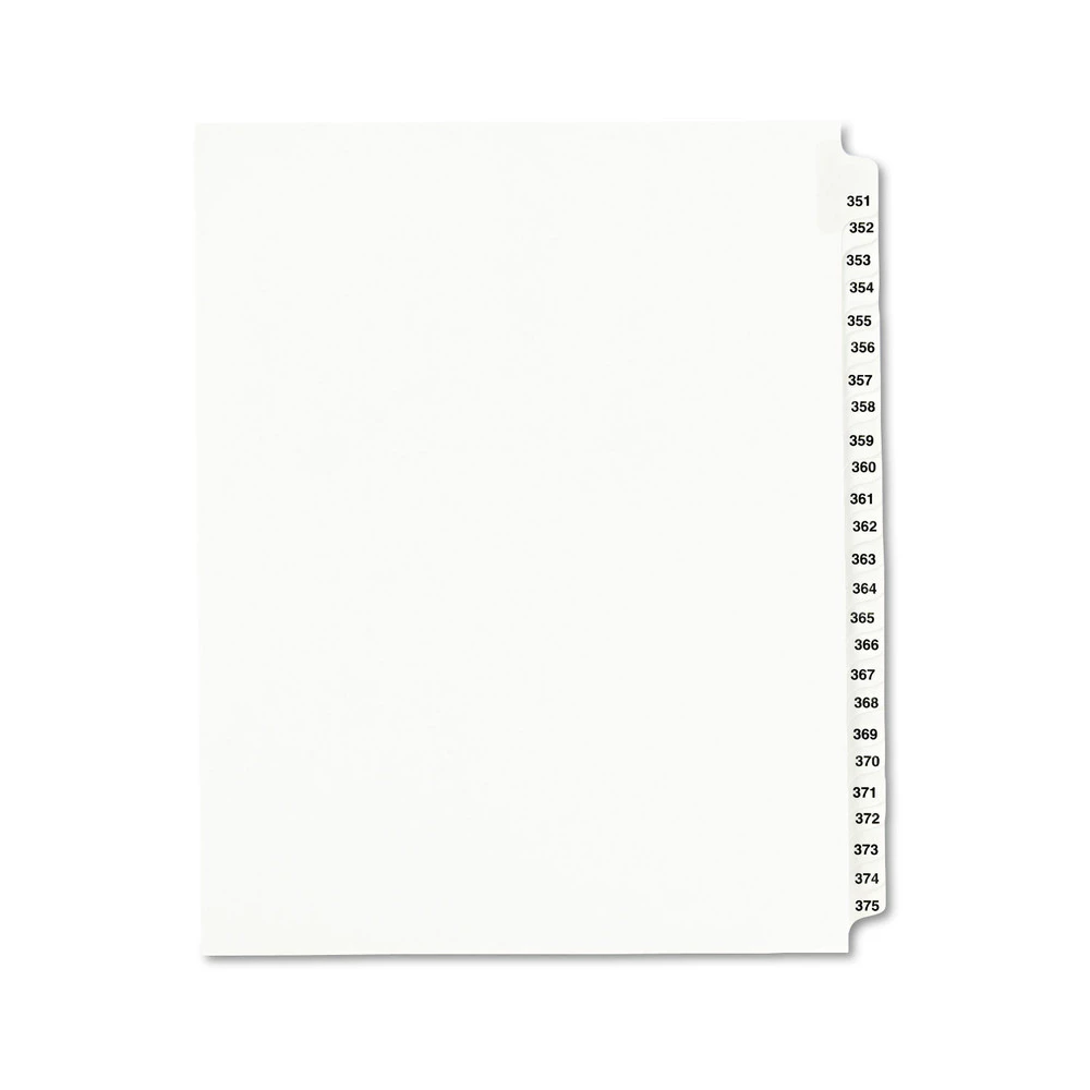 - Avery 25 Tab Numbers 351 – 375 Legal Exhibit Side Tab Index Divider Set – WHT – 1344