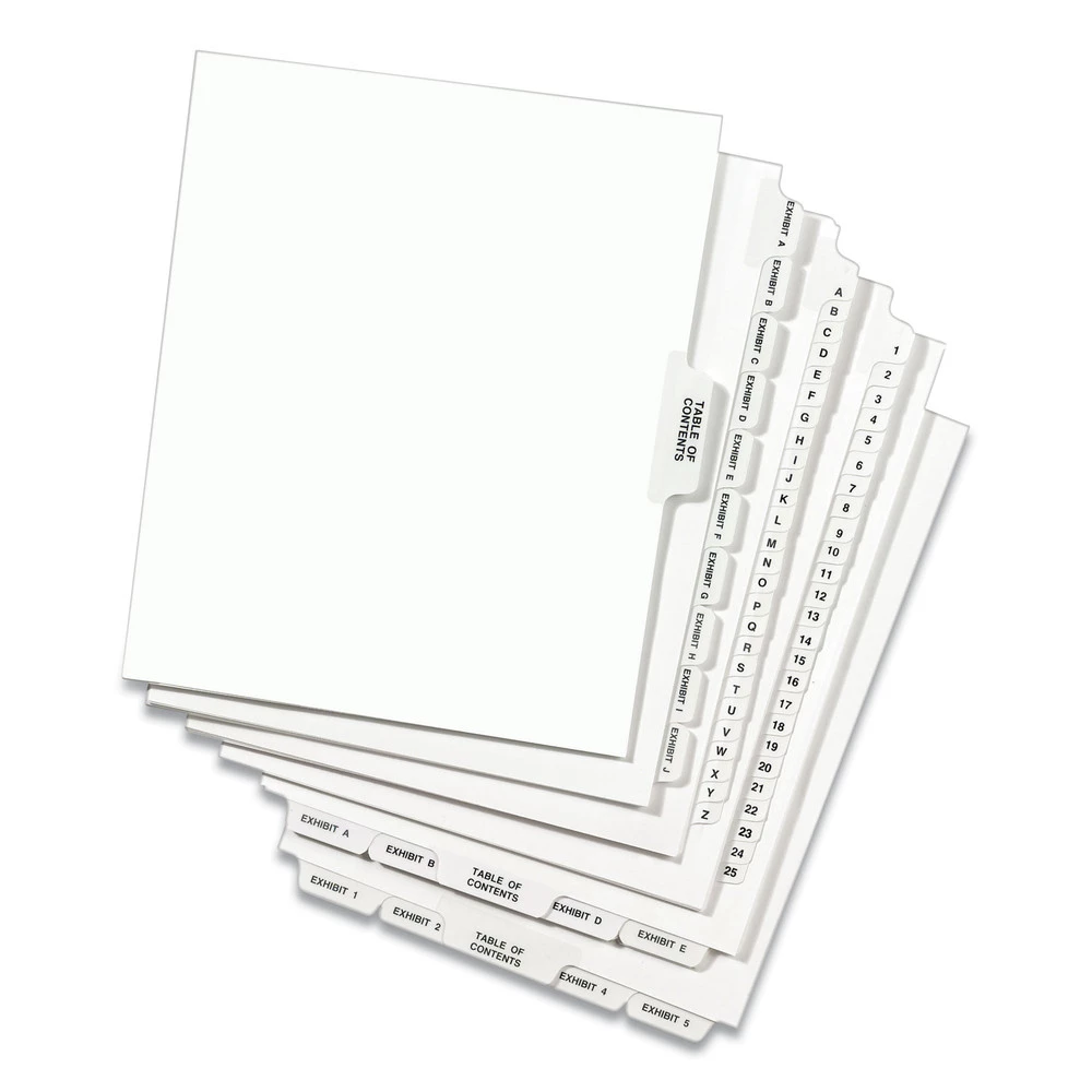 - Rip Proof reinforced tabs printed on both sides with exhibit letter.