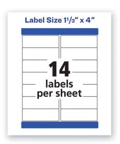 - (14-Piece/Sheet 50 Sheets/Pack) 1.33 in. x 4 in. Waterproof Address Labels with TrueBlock and Sure Freed for Laser Printers – White – 5522
