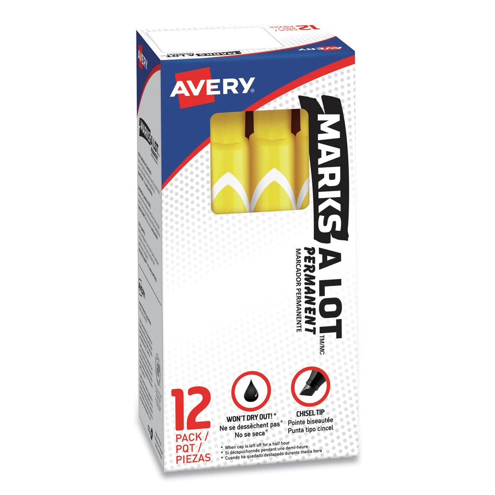 - (12-Pc.) Marks-A-Lot Chisel Tip Desk Style Permanent Markers – XL, YEL – 08882