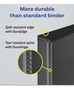 - Binder features a DuraHinge design that’s stronger, lasts longer and resists tearing, and DuraEdge that makes the sides and top more pliable to resist splitting