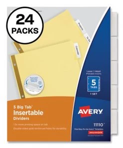- (24-Pc./Box) Big Tab 5-Tab Insertable Tab Dividers – 11113