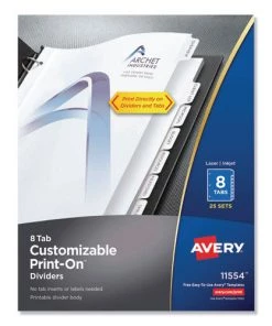 - (8-Pc./Sheet, 25 Sheets/Pack) Print-On 3-Hole Punched Dividers – WHT – 11554