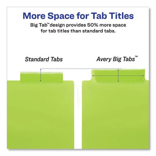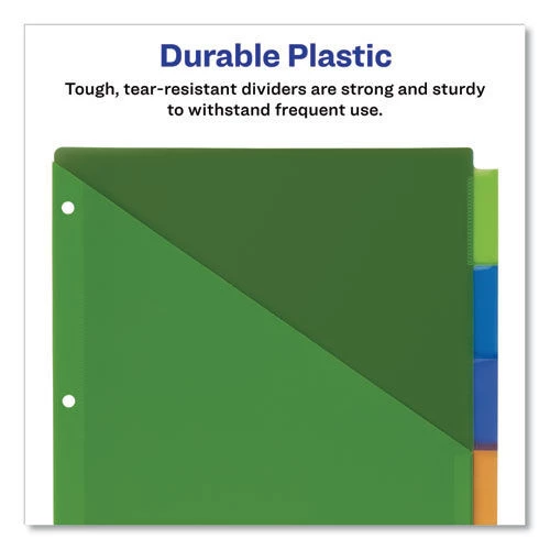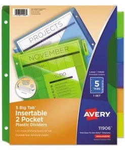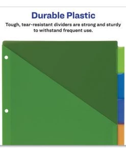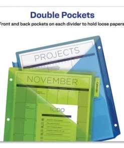 - Durable plastic dividers with two pockets and bigger tabs for more efficient organization