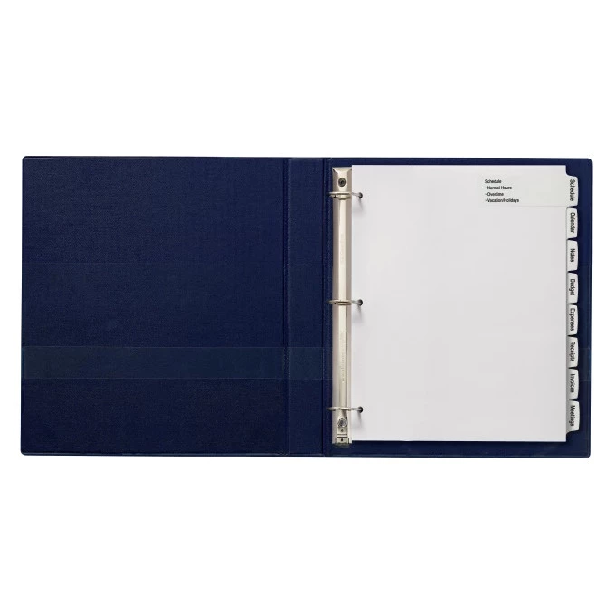 - Large labels extend from tabs onto divider bodies for more information, section contents, logos or designs