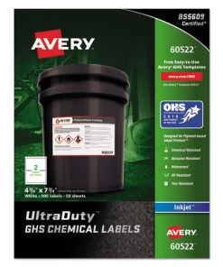 - (2-Piece/Sheet 50-Sheets/Pack) UltraDuty GHS Chemical 4.75 in. x 7.75 in. Waterproof and UV Resistant Labels – White – 60522