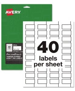 - PermaTrack 40/Sheet 8 Sheet/Pack 0.75 in. x 1.5 in. Laser Printers Tamper Evident Asset Tag Labels – White – AVE60528