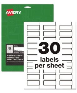 - PermaTrack 30/Sheet 8 Sheets/Pack 0.75 in. x 2 in. Laser Printers Destructible Asset Tag Labels – White – AVE60531