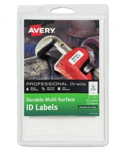 - 12/Sheet 10 Sheets/Pack 0.75 in. x 1.75. in. Handwrite Only Durable Permanent Multi-Surface ID Labels – White – AVE61521