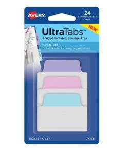 - 24/Pack 2 in. Wide 1/5-Cut Ultra Tabs Repositionable Standard Tabs – Assorted Pastels – 74755