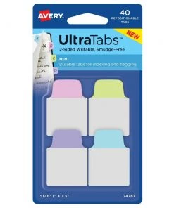 - 40/Pack 1 in. Wide 1/5 Cut Ultra Tabs Repositionable Mini Tabs – Assorted Pastels – 74761