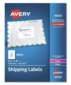 - (1000) Inkjet/Laser Printer 3.5 in. x 5 in. Shipping Label Bulk Packs – White – 95935