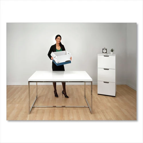 - (12/Carton) R-KIVE 12.75″ Letter/Legal File HD Storage Boxes w/Dividers – WHT/BLU – 0083601