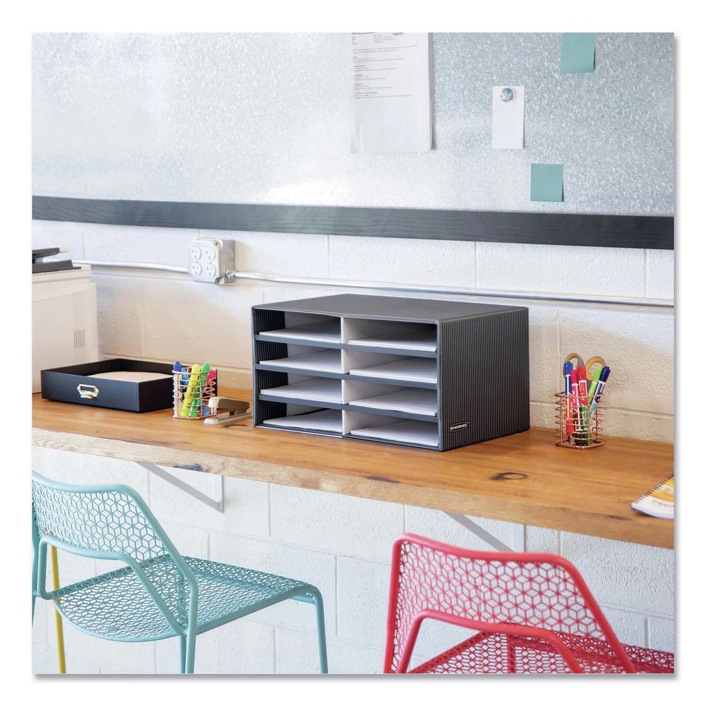 - 19.5 in. x 12.38 in. x 10.25 in. 8 Letter Sections, Decorative Sorter – Black/Gray Pinstripe – 6170301