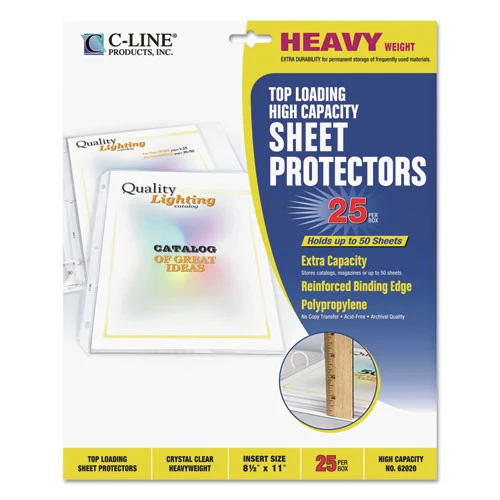 - (25/Box) 11 in. x 8-1/2 in. 50 in. High Capacity Polypropylene Sheet Protectors – Clear – 62020