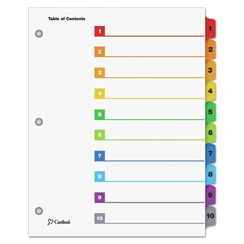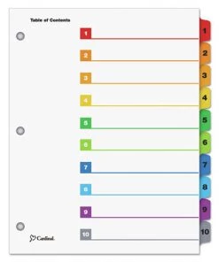 - (24/Box) 11 in. x 8.5 in. 1-10, 10-Tab, QuickStep OneStep Printable Table of Contents and Dividers – White/Assorted – 61038