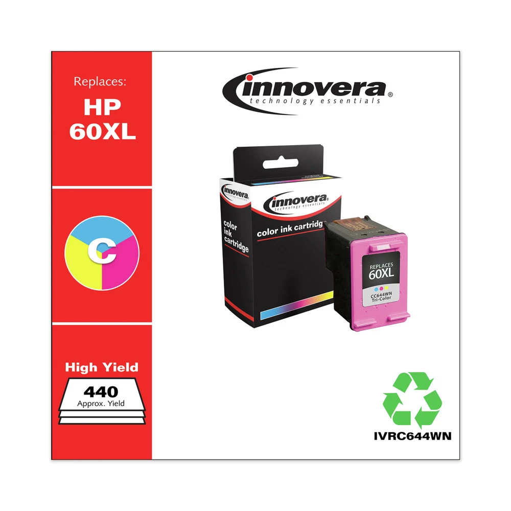 - 440 Page-Yield, Replacement for HP 60XL (CC644WN), Remanufactured High-Yield Ink – Tri-Color – C644WN