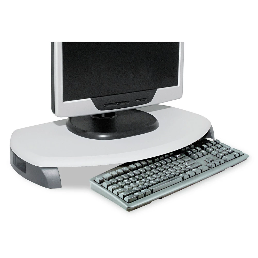- Raises monitor to eye level.