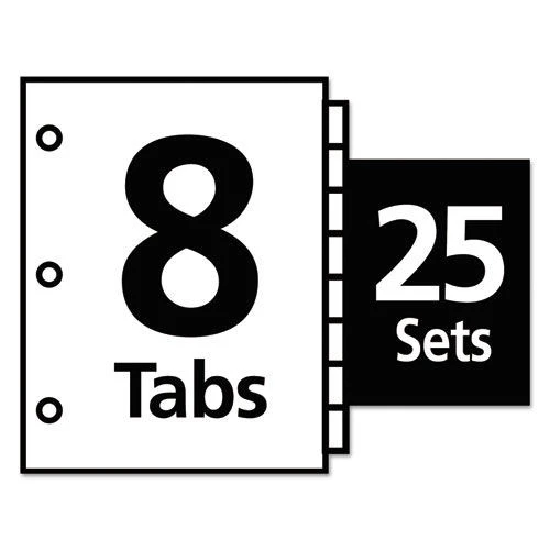 - 25-Set 8-Tab 11.5 in. x 9.75 in. Index Dividers with White Labels – 11339