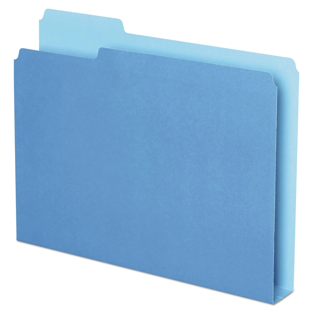 - (50-Pc./Pack) Double Stuff 1/3-Cut Tab File Folders – BLU – 54455