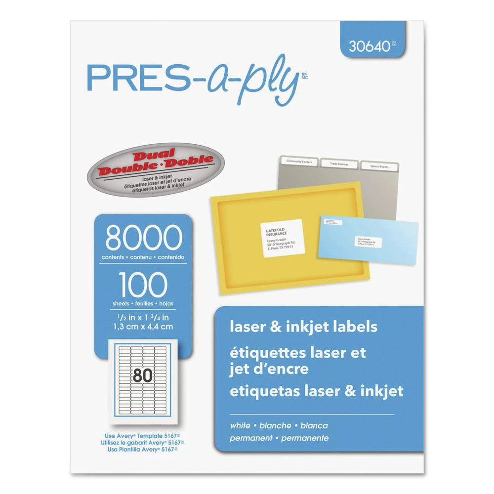 - (8000) 0.5 in. x 1.75 in. Inkjet/Laser Printer Labels – White – 30640
