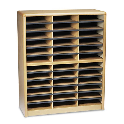 - 36 Section Steel/Fiberboard Literature Sorter – Oak – 7121MO