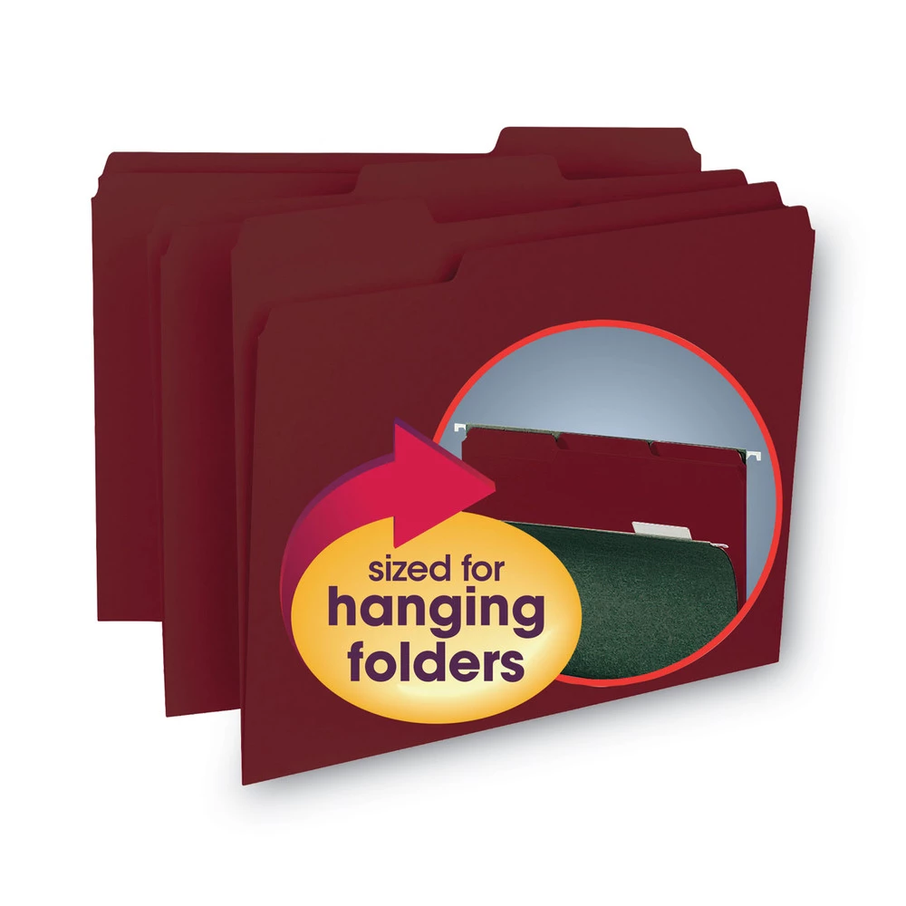 - (100/Box) 1/3-Cut Tabs, Interior File Folders – Letter, Maroon – 10275