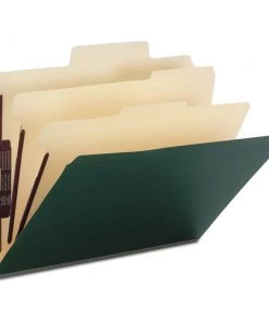 - (10/Box) SuperTab SafeSHIELD Coated Fastener Technology, 2 Dividers, Letter Size, Classification Folders – Dark Green – 14012
