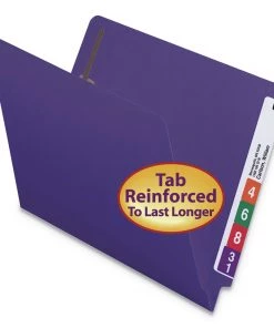- (50/Box) Straight Tab Heavyweight Colored End Tab Folders with Two Fasteners – Letter, Purple – 25440