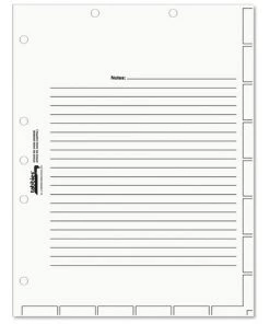- Seven-hole punched to be used with fasteners in folders or 3-ring binders.